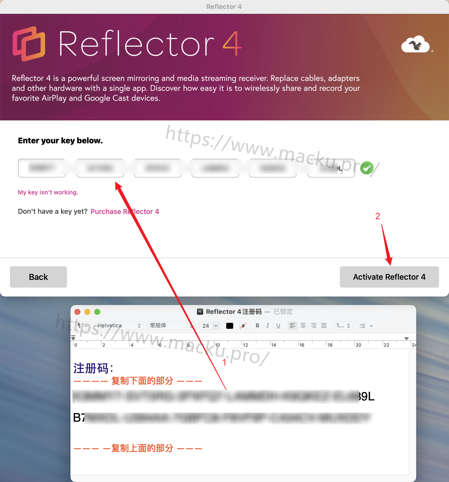 7.将注册码复制到注册页面,单击【Activate Reflector 4】进行激活