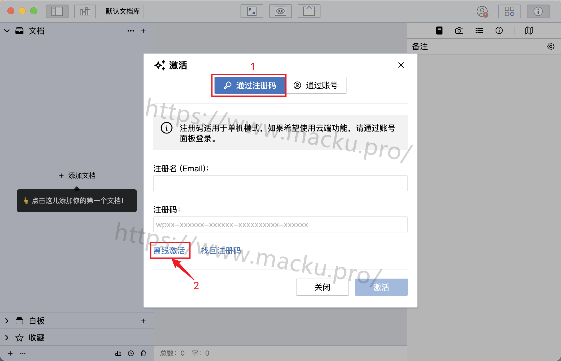 每个文档都可以添加单独的备注,以供写作参考。 -