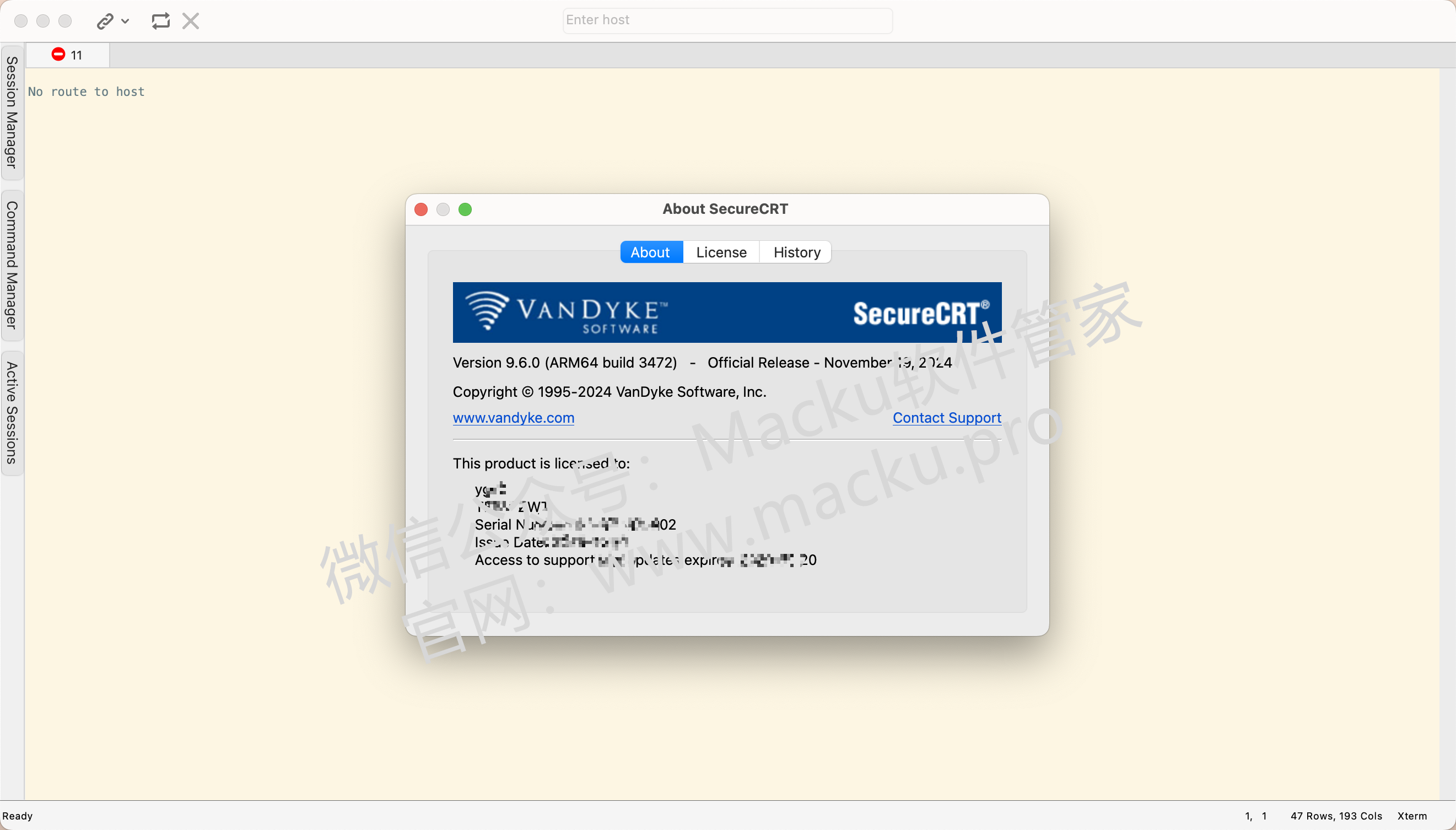 ‌       安全终端模拟器 提供了一个强大的终端模拟器,支持 Telnet、SSH1、SSH2 等协议,可连接到常见的远程主机和设备。提供了多个会话窗口,并具备Tab 浏览功能,使得用户可同时连接多个设备进行操作。 加密连接 使用强大的加密算法来保护您的数据传输。它支持 SSH、SSL 和 TLS 协议,确保数据在网络上的安全传输。您可以放心地执行敏感操作,如远程管理、文件传输等,而不用担心信息被拦截或泄露。 配置管理和自动化 软件允许用户保存和管理连接配置,包括主机地址、端口、用户名、密码等,方便快速连接到特定设备。此外,SecureCRT 还支持脚本编写和自动化任务,使用户能够批量执行命令、自动化流程以及自定义自己的工作流程。 会话管理 具有强大的会话管理功能,可以保存和组织连接会话。您可以创建文件夹、标签和书签,以便快速访问和管理已建立的会话。这对于需要频繁连接到多个远程设备的用户非常实用。 文件传输 集成了可靠的文件传输功能,支持多种协议,如SCP、SFTP 和 FTP。您可以方便地通过拖放文件或使用命令行传输文件,实现本地计算机和远程主机之间的文件传输。 高级终端功能 软件提供了丰富的终端功能,如多重窗口、分屏显示、高亮显示、完成提示等。您可以自定义配色方案、字体和键盘快捷键,以满足个性化的需求。 跨平台支持 提供了跨平台的支持,可运行在 Windows、Mac 和 Linux 等操作系统上,使得用户能够在不同平台上无缝使用该软件。
